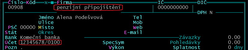 Pořiďte předem adresáta srážky do /Adresáře firem.