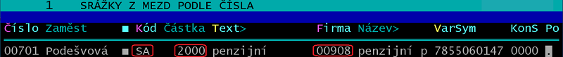 V oddíle "jiné dávky ke mzdě" na údaji za dvojtečkou využijte číselníku, který vyvoláte klávesami ShiftF7.