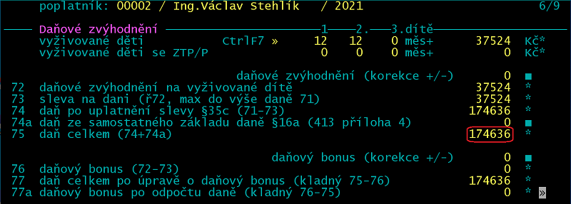 Poslední známá daňová povinnost u fyzických osob je daň po uplatnění slevy (řádek 75 daňového přiznání), případně daňový bonus (řádek 76).