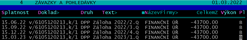 či pomocí /Zálohy do závazků přesuňte zálohy do závazků.
