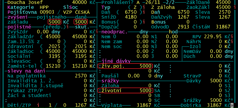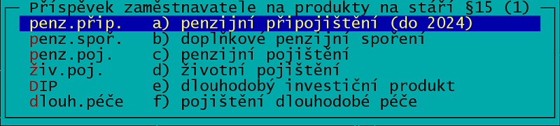V oddíle "jiné dávky ke mzdě" na údaji za dvojtečkou využijte číselníku, který vyvoláte klávesami ShiftF7.