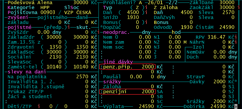 Zaměstnavatel platí měsíčně na penzijní připojištění zaměstnance částku 2.000 Kč.